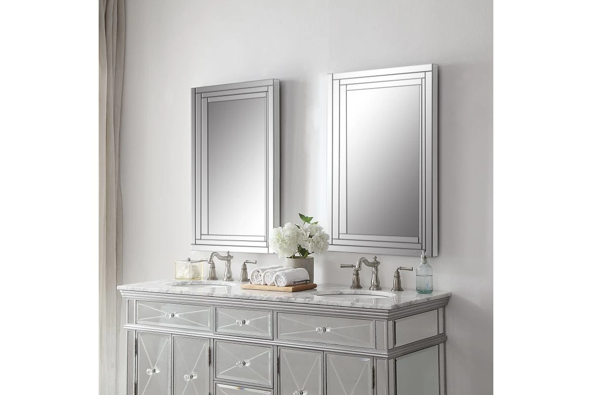 This Frameless Mirror Is Constructed Of Stepped, Bevel Mirrors With Polished Edges For A Smooth, Clean Finish. Center Mirror Has A Generous 1 1/4″ Bevel. May Be Hung Either Horizontal Or Vertical.