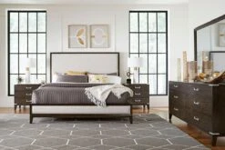 The Bay Harbor nightstand makes an appealing bedside companion. Two USB ports and two power outlets, located behind the upper back of the nightstand, keep electronic devices charged. Two deep drawers keep your necessities close at hand (the top drawer is crafted to look like two drawers but is one spacious drawer). Each drawer is made using English and French dovetail construction for strength and stability. Crafted with a fresh graphite finish.
