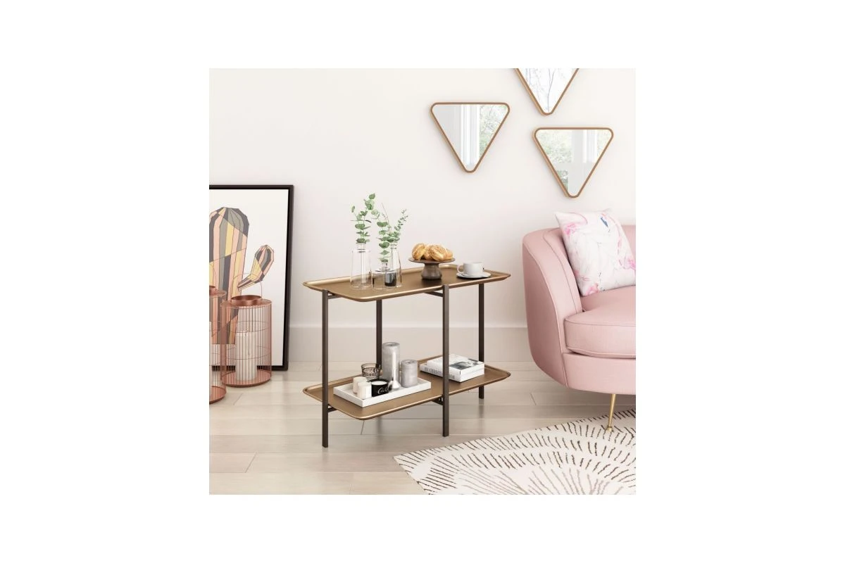 Combining urban, glam, industrial, and boho elements, the Benjamin coffee table has a painted steel frame, with dual levels, and looks good in any space.