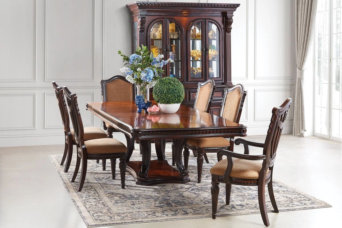 The Cabernet Collection is a family of furniture that captures the essence of graceful European styling. This upholstered arm chair features beautiful primavera veneers with delicate inlays of walnut, plush cushions and a lustrous finish.