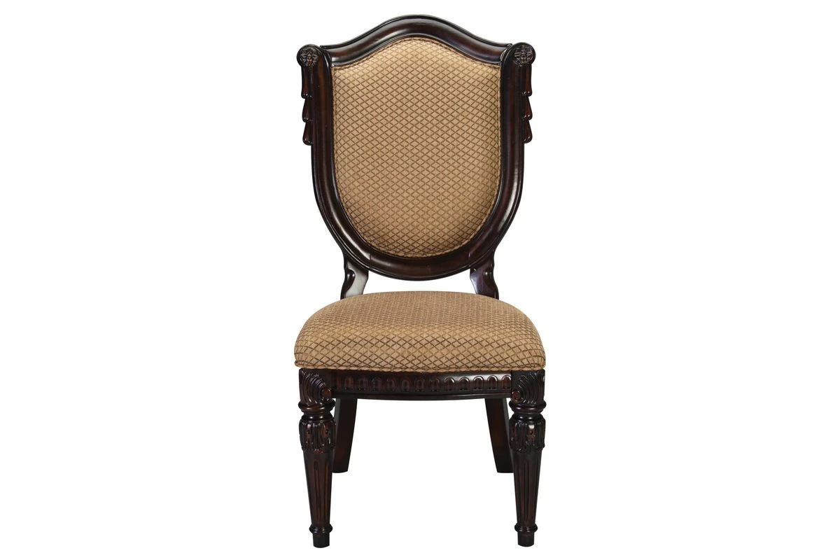 The Cabernet Collection is a family of furniture that captures the essence of graceful European styling. This upholstered side chair features beautiful primavera veneers with delicate inlays of walnut, plush cushions and a lustrous finish.