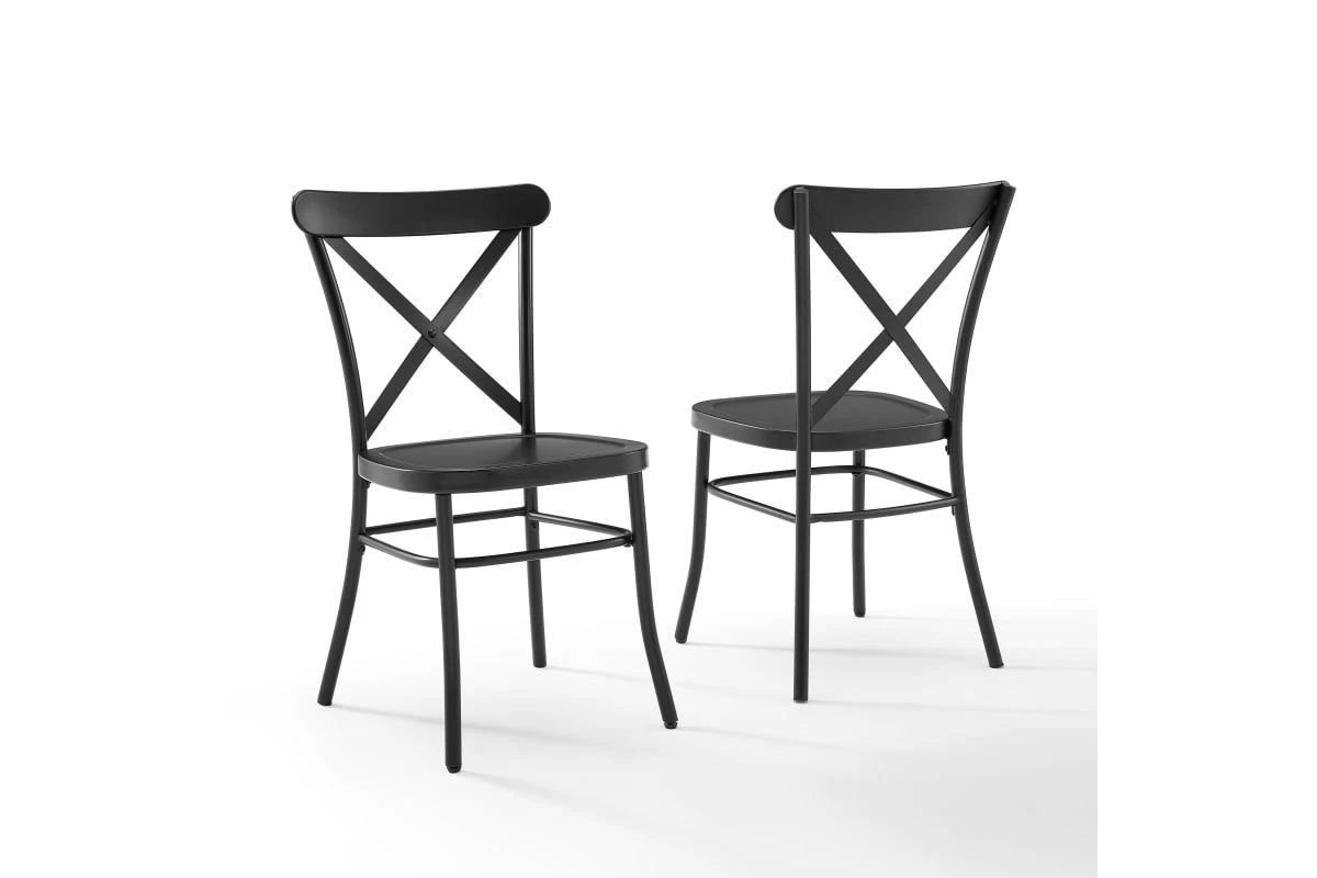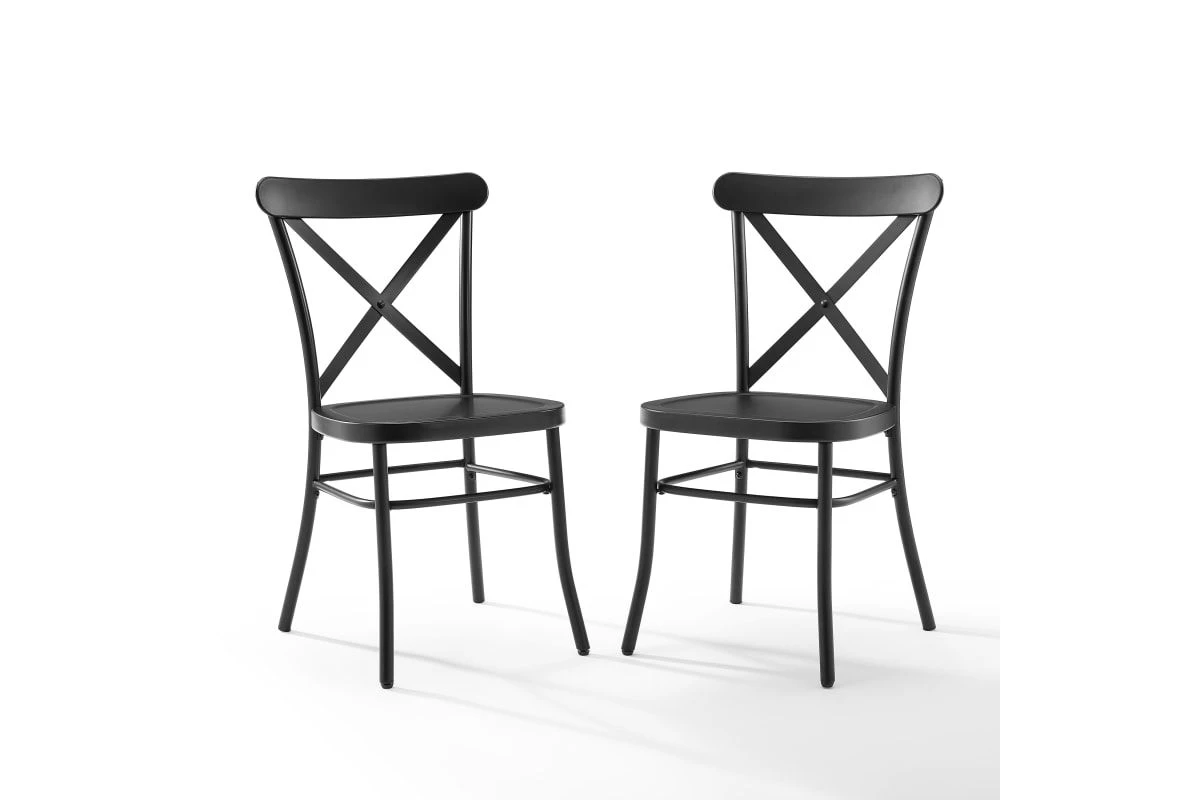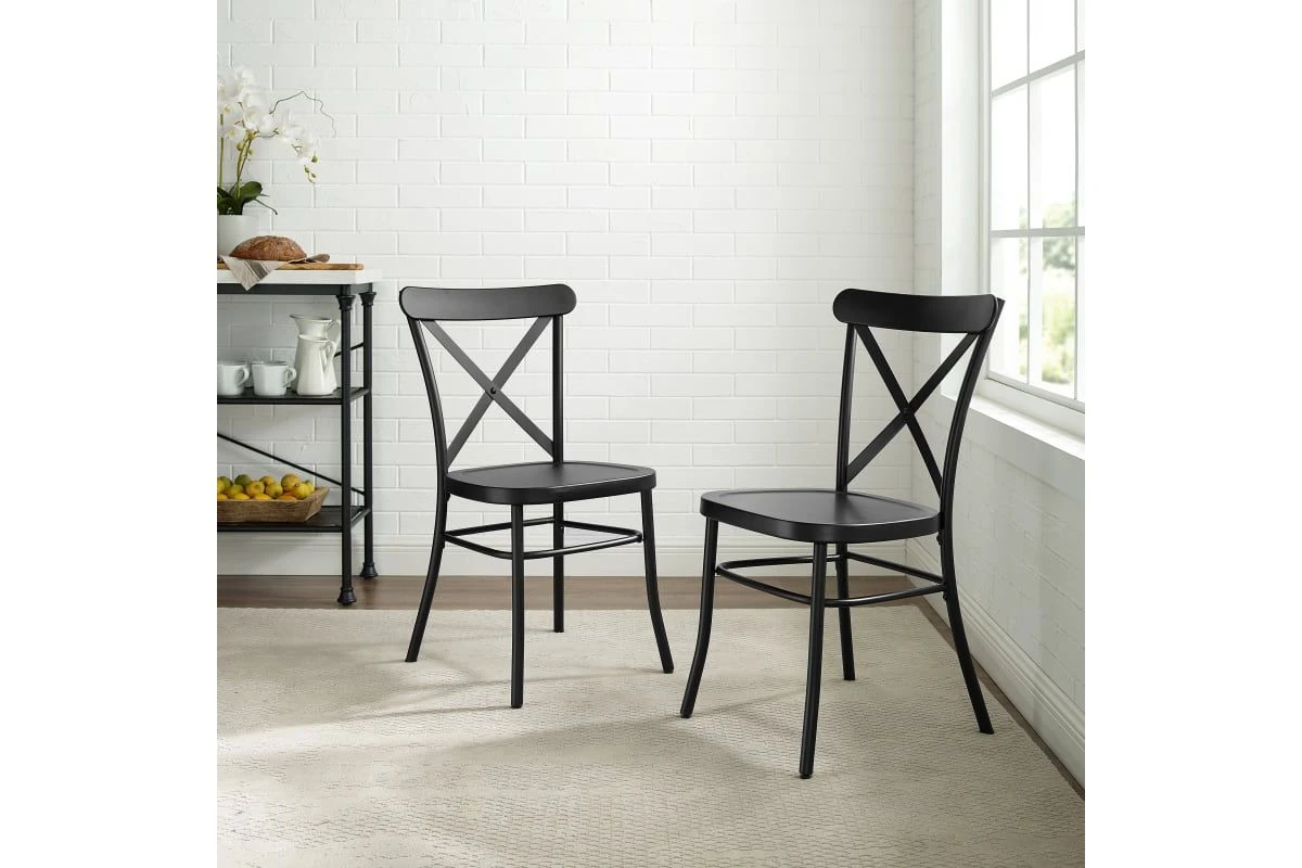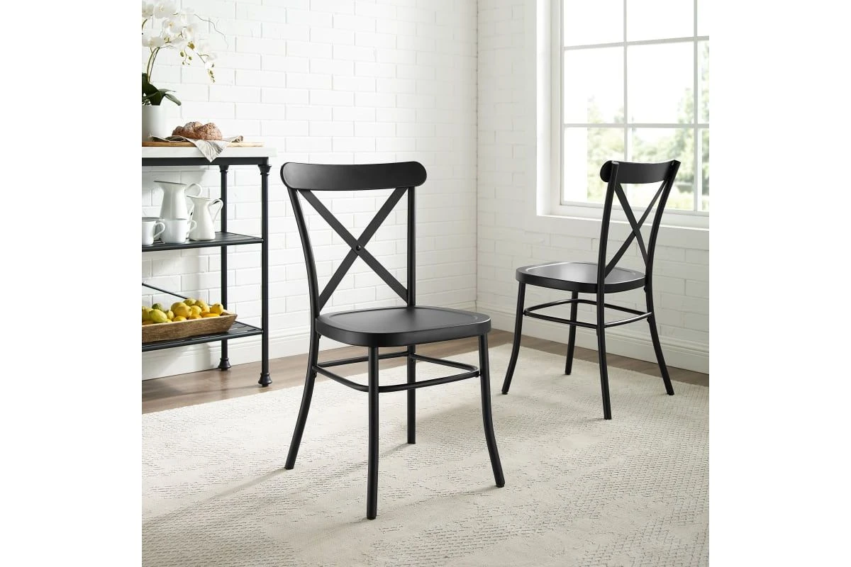 Inspired by the French industrial revival, the Camille Chair Set is a refreshing take on café seating with its open x-back design. Constructed of solid steel, this chair set combines quality materials with a thoughtful design. Perfect for daily use or as additional seating for parties, the Camille Chair Set is both stylish and versatile.