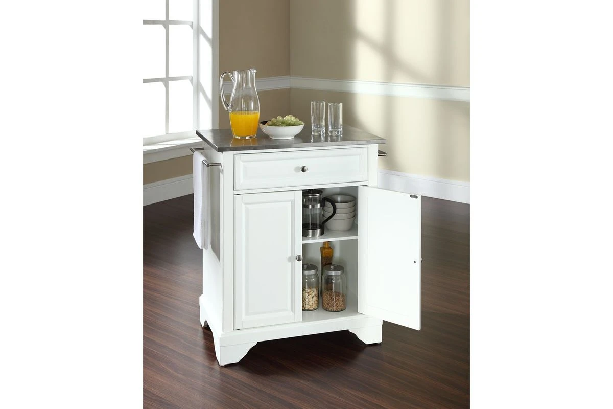 Crosley Lafayette Stainless Steel Top Portable Kitchen Island In White