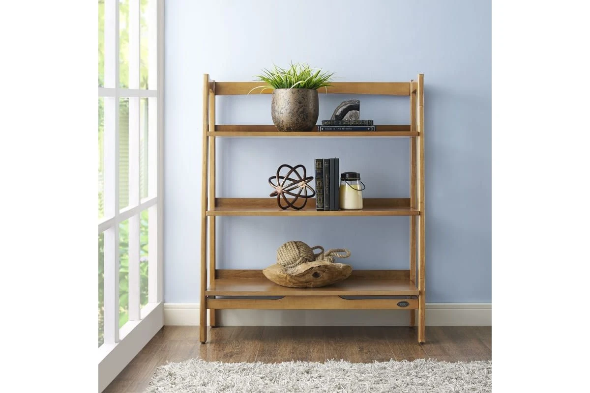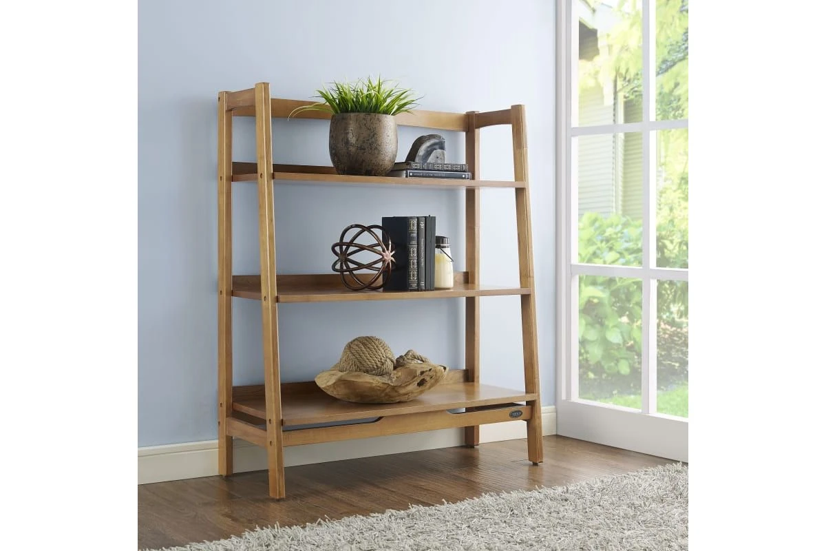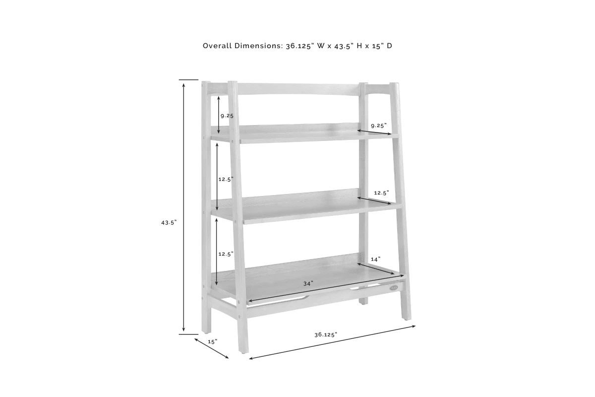 Displaying treasured decor and mementos can be chic and modern with the Landon Bookcase from Crosley. Taking cues from Swedish Mid Century Modern design, the sleek diagonal lines draw the eye upward in a gentle slope, giving attention to the three stationary shelves. Perfect for books, curiosities, frames, and other decor, the Landon Bookcase is the perfect subtle solution to storage.