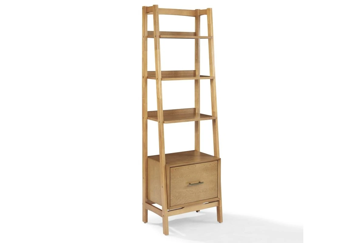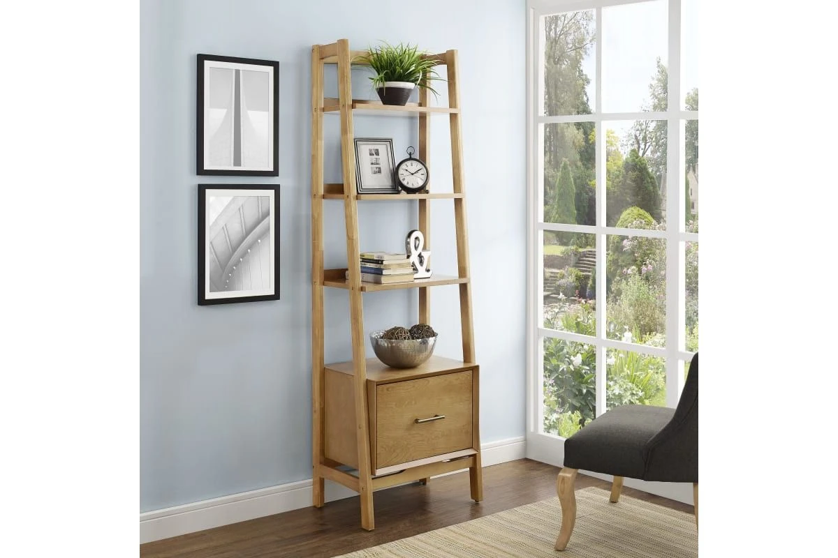 The Landon Small Étagère brings simplicity and style to any home. Taking cues from mid-century modern design, this etagere features a sturdy wood frame with three open shelves and a spacious office style drawer that is seated on full extension glides to give access to every corner. Ideal for books and other decor, the Landon Small Étagère delivers classic home organization with modern flair.