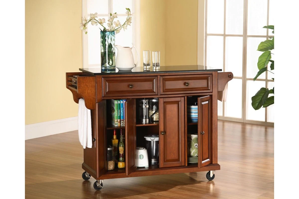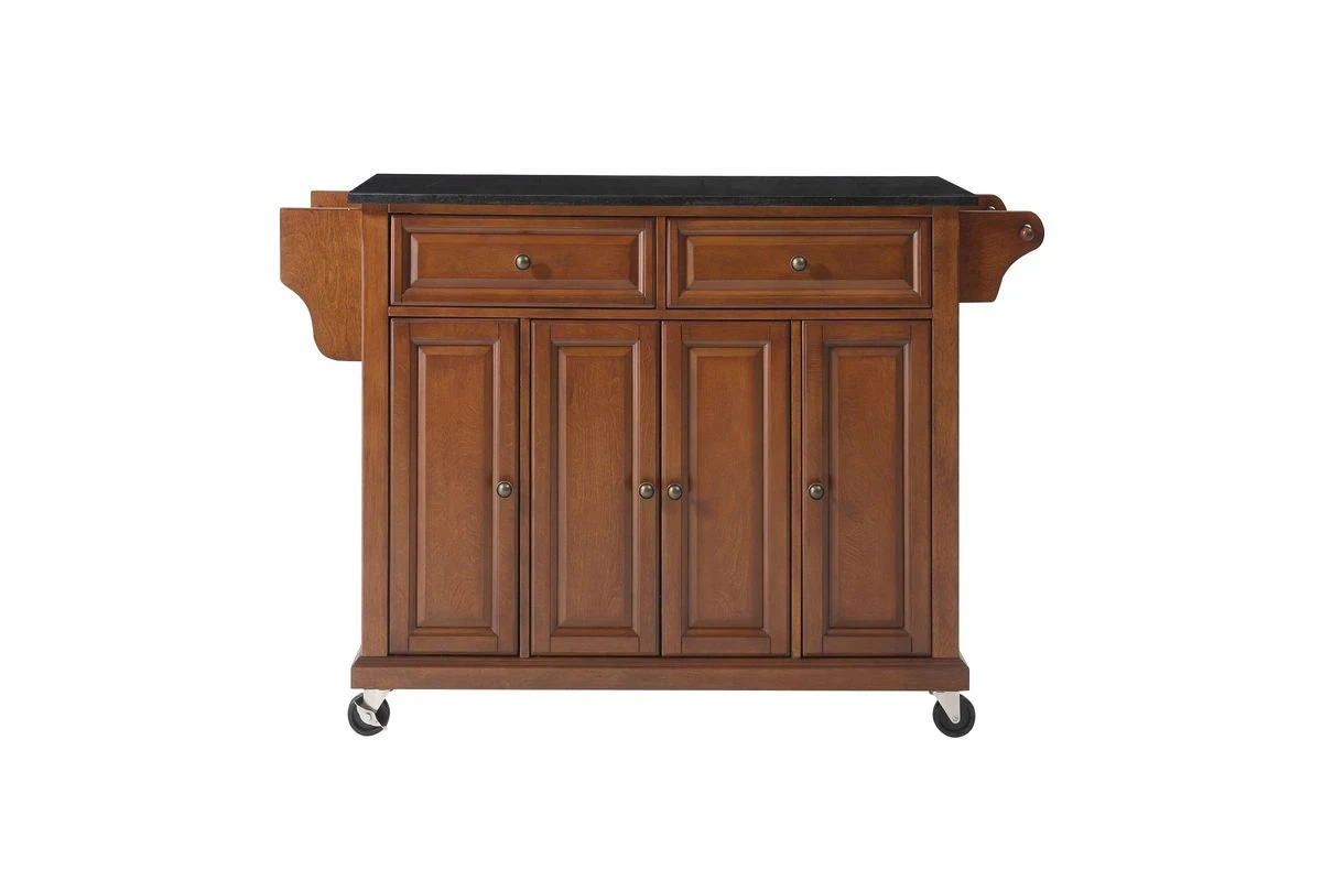 Crosley Solid Black Granite Top Kitchen Cart/Island In Classic Cherry