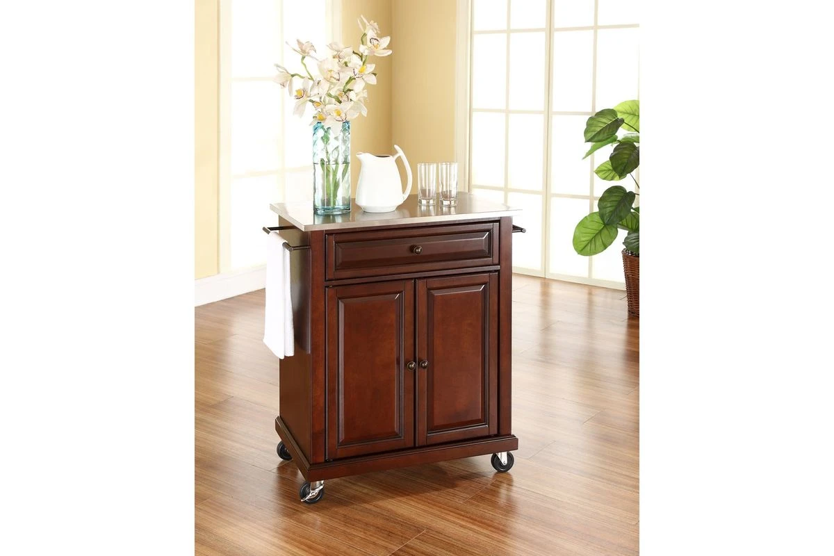 Crosley Stainless Steel Top Portable Kitchen Cart/Island In Vintage Mahogany