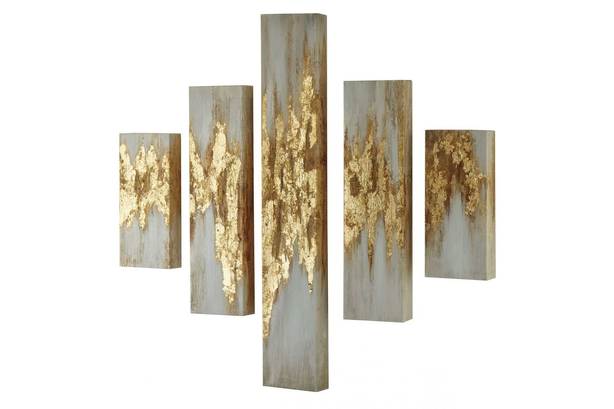 All that glitters is always gold with this wall art set. Fancy up your space with just the right amount of chic sparkle. The golden texturing glams up the free-flowing pattern that mimics beautiful, natural erosion. Talk about high-drama styling.