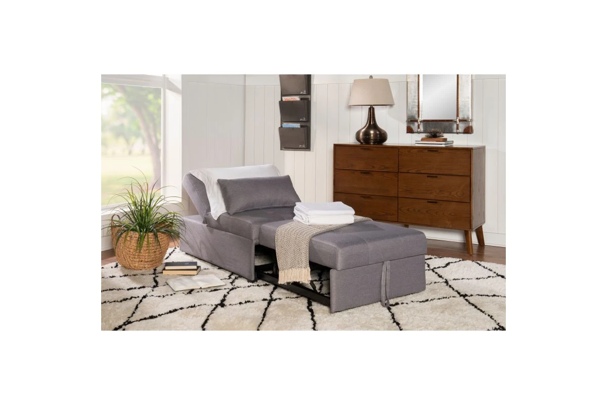 Enjoy a contemporary look that brings comfort and style to your home with this convertible Sofa Bed. Designed to adapt easily to any lifestyle, this unit transforms from a single armless chair into a 44″ large ottoman or a 75″ twin-size bed! Equipped with a cozy roll pillow, its tufted fabric and plastic legs provide extra support whether you’re watching the game or indulging in a nap. Place this stylish sleeper in your next apartment to conserve space and accommodate guests.