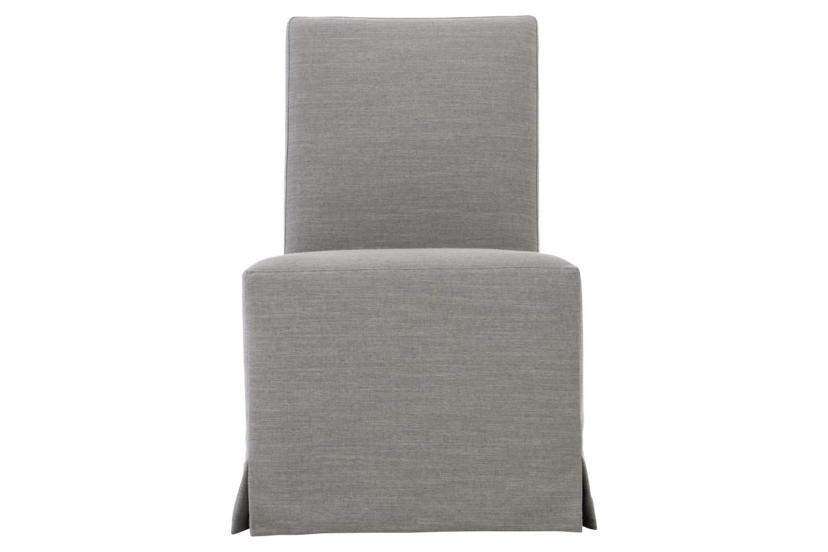 Inspired by 17th century French Provincial furnishings, Everly balances traditional forms with casual style. The Everly side chair showcases an elegant shape smoothly upholstered in soft neutral fabric with a stitched slipcover look. Clean lines contribute to a clean, contemporary aesthetic that merges seamlessly with classic European influences.