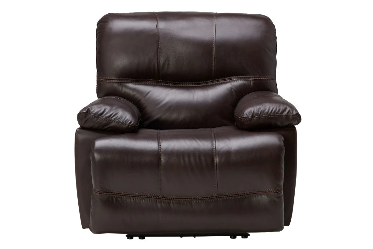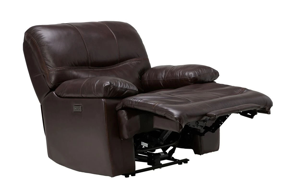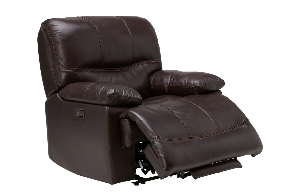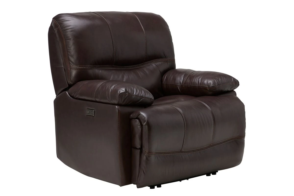 Pairing the comfort of a traditional recliner with the sophisticated stylings of a modern frame, the Ezra Power Recliner transform your space. Modernized with oversized seat depths and a clean, tailored frame the Ezra Power Recliner will provide enough seating for the whole family. Featuring a leather everywhere the body touches, the Ezra Power Recliner is as durable as it is stylish. Offering endless lounging positions, this power reclining collection is ideal for afternoon naps and Saturdays filled with football.