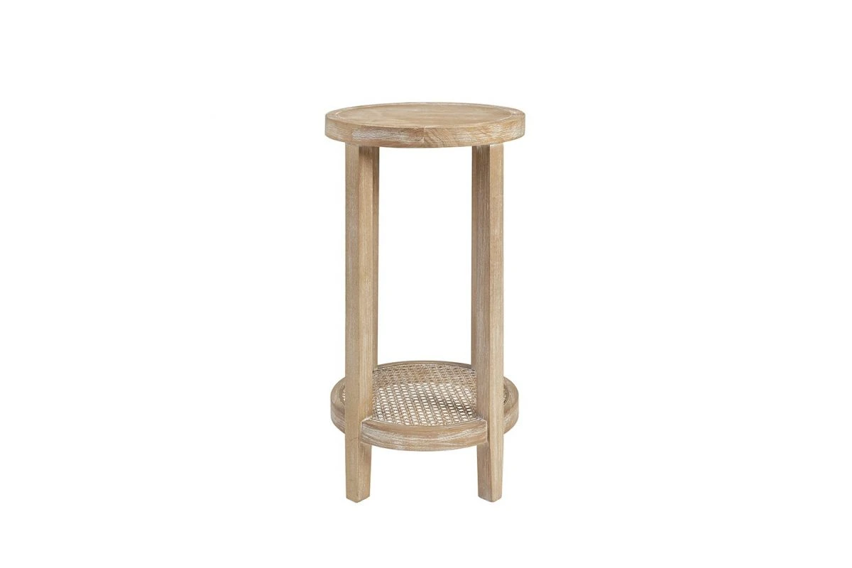 Created exclusively for the Martha Stewart Bedford furniture collection that embodies country farmhouse living, the Harley Accent Table provides a simple and charming addition to your home décor. This round accent table features Ash veneer table top and lower rattan cane shelf creating a unique design. The diameter of this table is 15 inches and the height is 28 inches. A reclaimed wheat finish on the wood frame and legs gives this accent table a natural allure that complements most decors. This functional and practical lifestyle is evidenced in her thoughtfully appointed decor which embraces a neutral color palette that acts as a perfect backdrop to four seasons of color. Fully assembled.