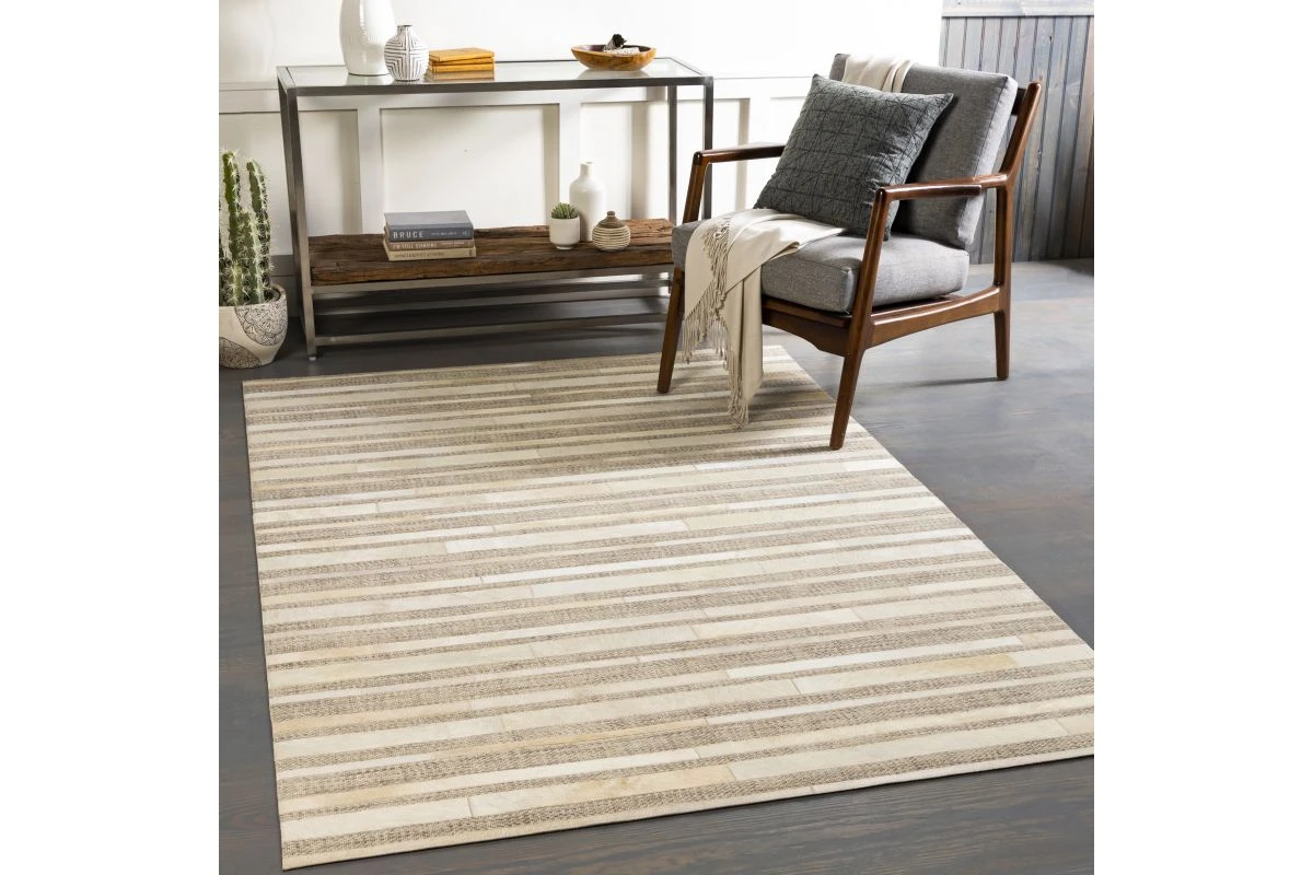 The simplistic yet compelling rugs from the Jardin Collection effortlessly serve as the exemplar representation of modern decor. The meticulously woven construction of these pieces boasts durability and will provide natural charm into your decor space. Made with Wool, Leather in India, and has No Pile. Spot Clean Only, One Year Limited Warranty.