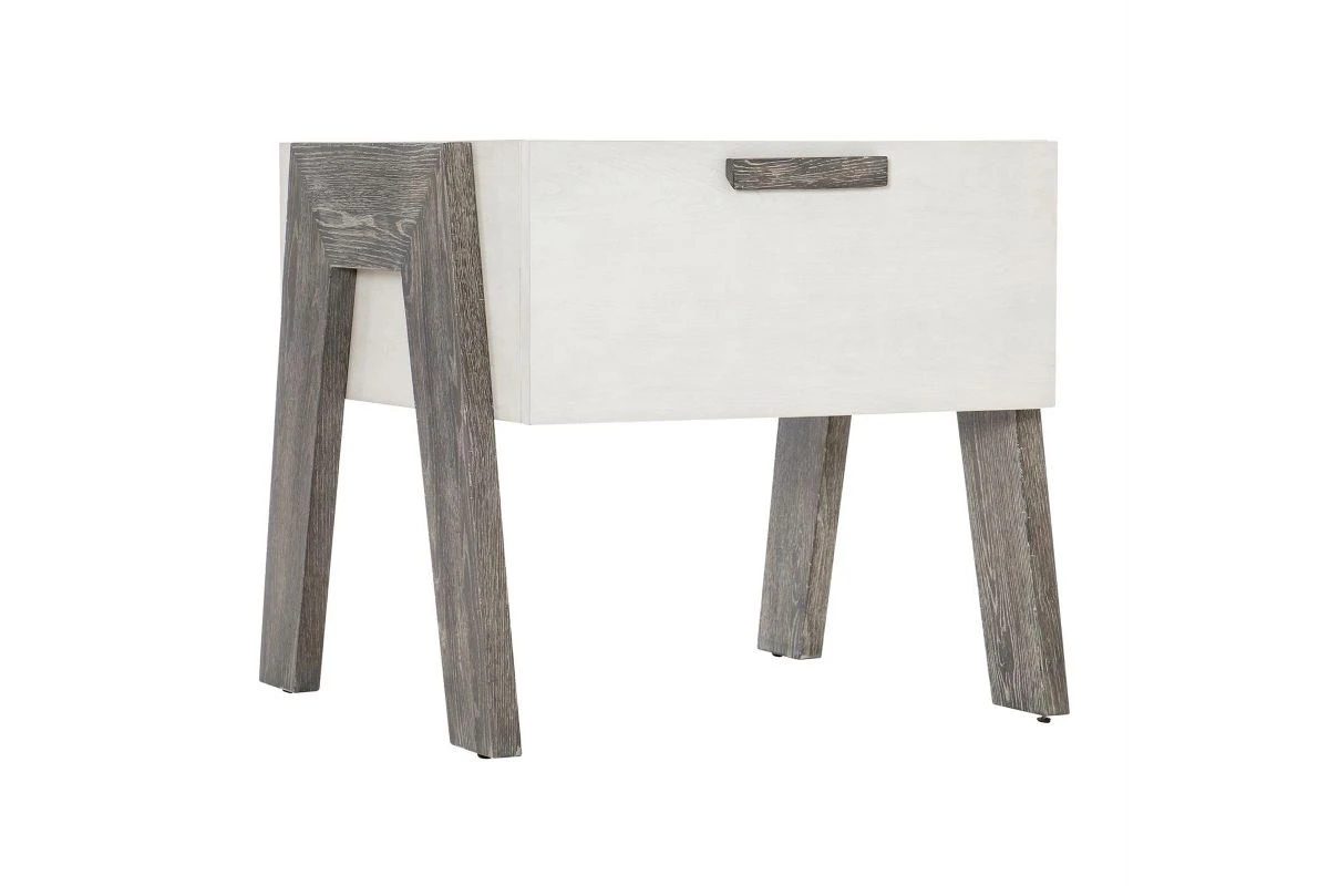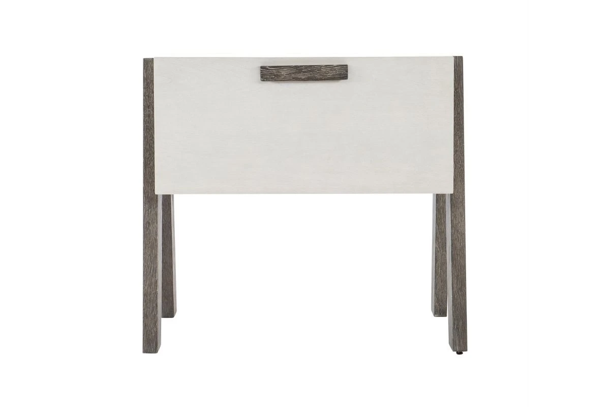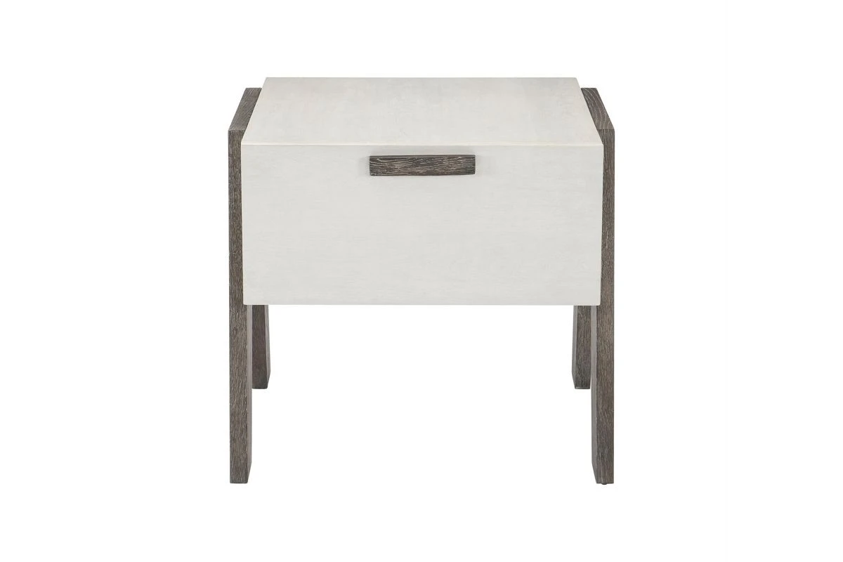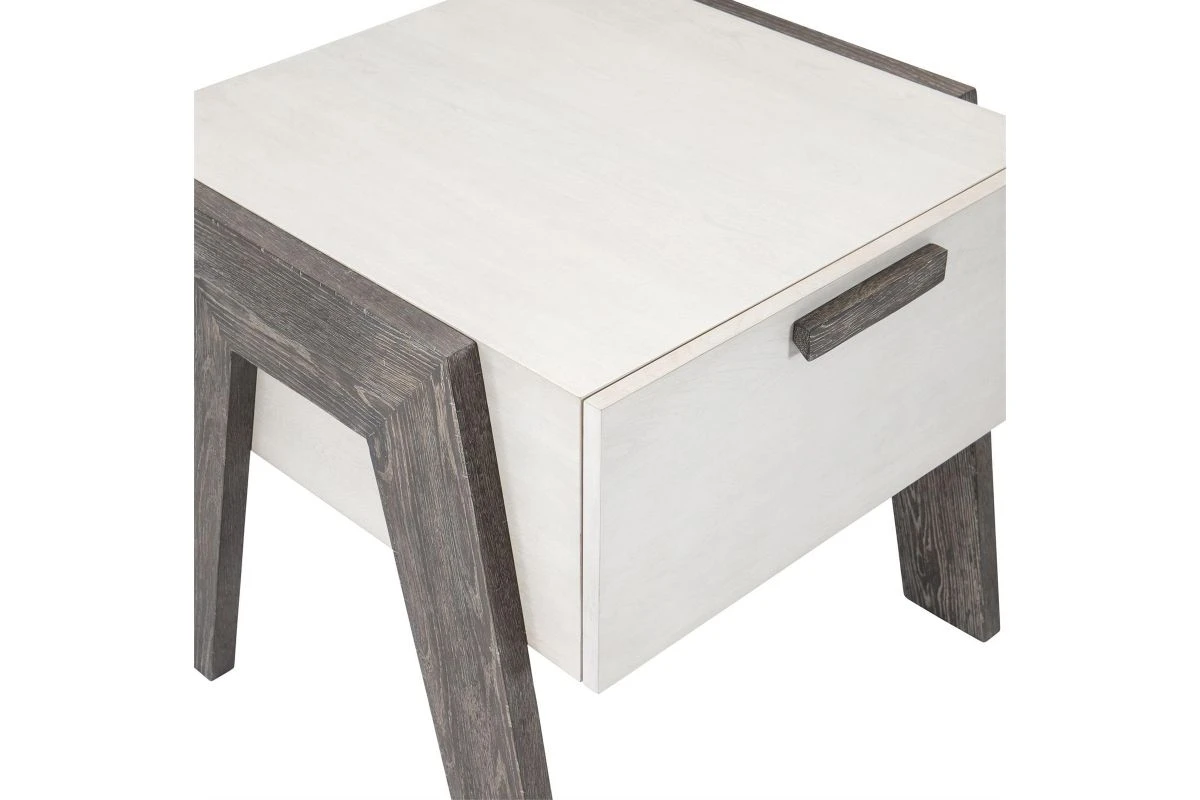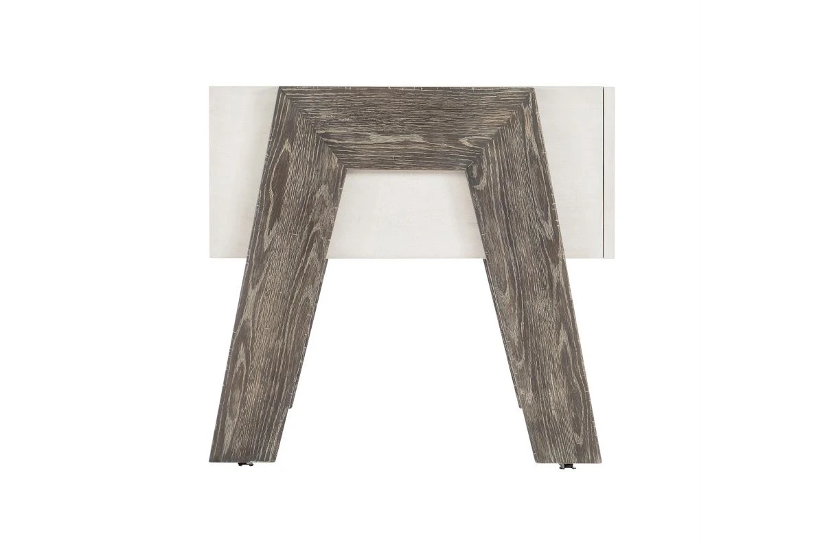 The Kingsdale side table is a balanced combination of finishes and materials. The top is crafted with a white birch veneer that contrasts with the side support oak legs. Its bold, clean-lined silhouette finds inspiration in both midcentury modern and rustic styling.