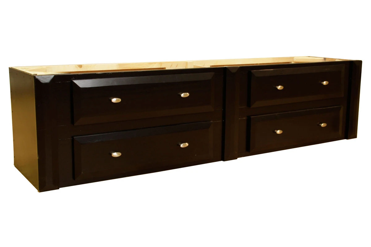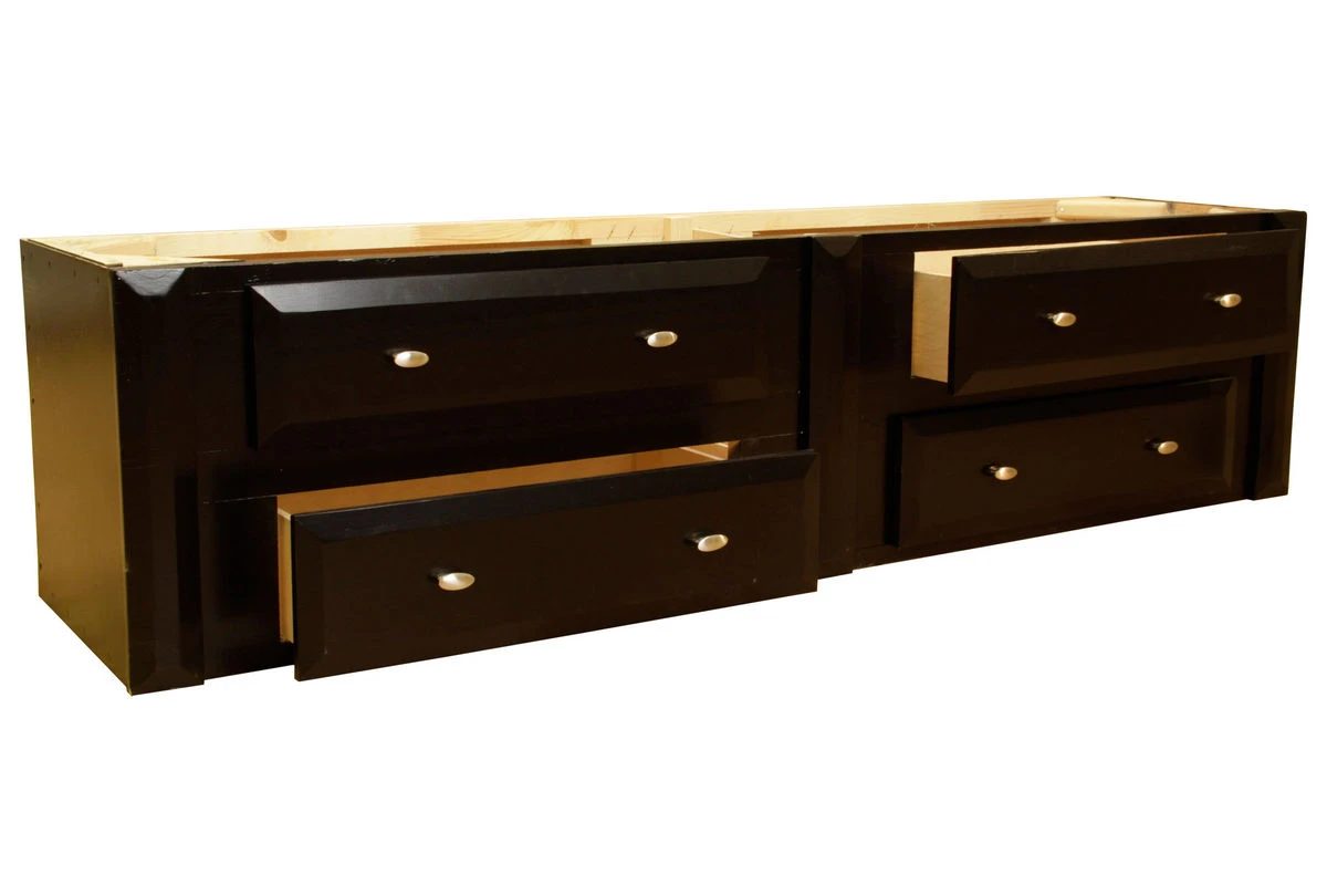 The Laguna Black 4-Drawer Trundle provides enough storage to hide clothes, toys and more. The furniture is constructed with solid Ponderosa Pine, painted a deep black cherry and finished with modern, brushed silver hardware.