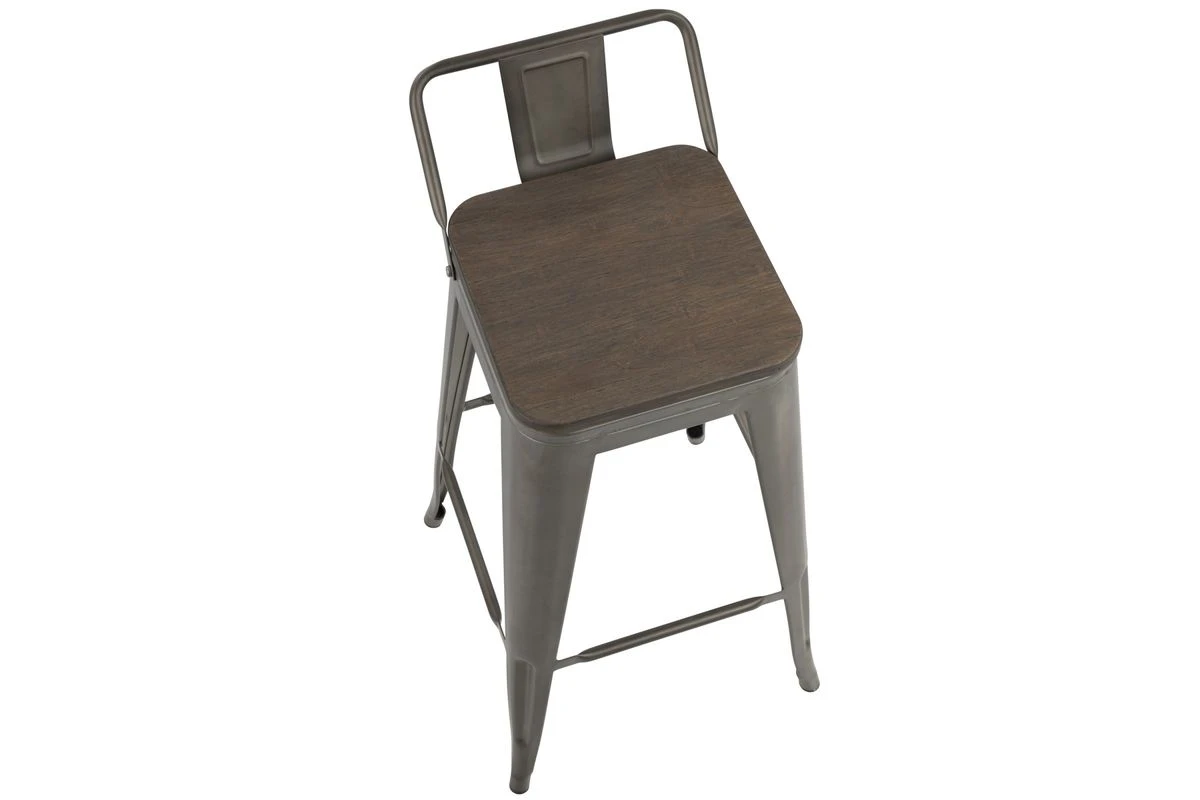 Oregon Industrial Low Back Barstool In Antique And Espresso By LumiSource – Set Of 2