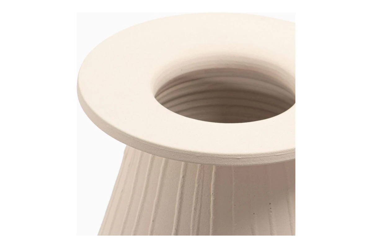 A journey through time, these vessels are handmade in the northern coastal city of Chulucanas, Peru using techniques dating back 1500 years. Each piece is individually formed, slip-decorated, then hand-burnished with a special stone to create a subtle luster. A distinct smokey scent lingers inside from the kiln fire it is born from. The Ossa decorative vessel is textured with linear detailing, showcasing the clay’s versatility, expressing personality and playfulness, breathing the beauty of ancient forms into any living space.Handmade by local artisansWFTO (World Fair Trade Organization) CertifiedNest CertifiedPlease note this is not a waterproof vessel & should be used for decorative purposes only0Made in Peru0. Color: Beige We offer 1 Year warranty. Dimension:7W 7D 8H. Product Weight:4.13 lbs. Material: Terracotta000