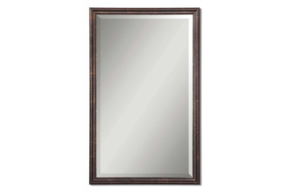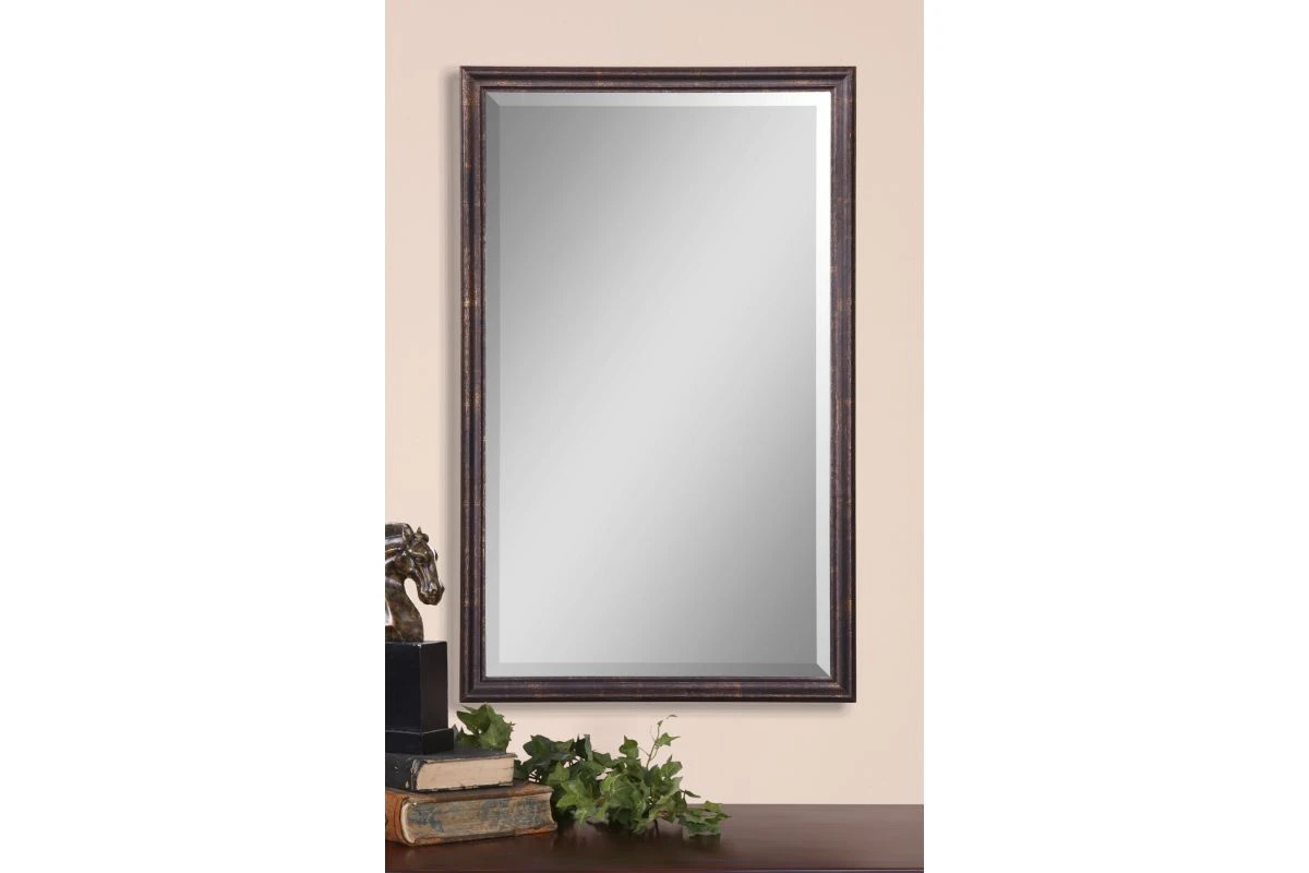 Frame Is Finished In Distressed Bronze With Gold Leaf Highlights. Mirror Has A Generous 1 1/4″ Bevel.