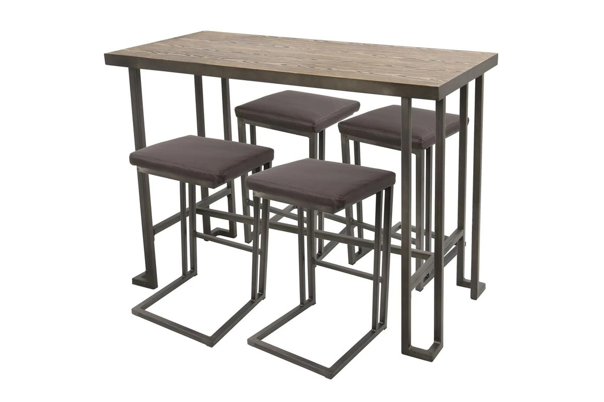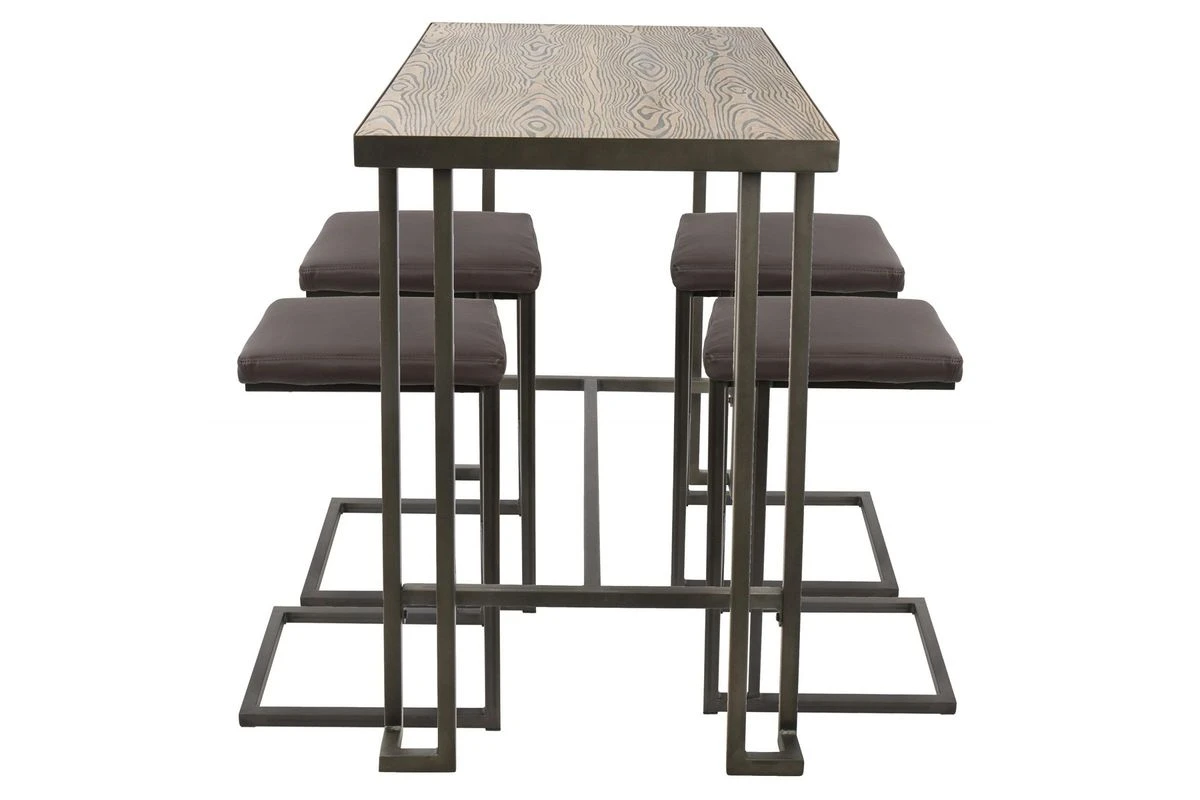 With its industrial undertones and modern profile, the Roman Counter Table Set from LumiSource is sure to conquer your kitchen, dining, or bar space. This set features an antique metal finish, brown bamboo top, and fixed height stools with leatherette seats. Includes 4 stools and 1 table.