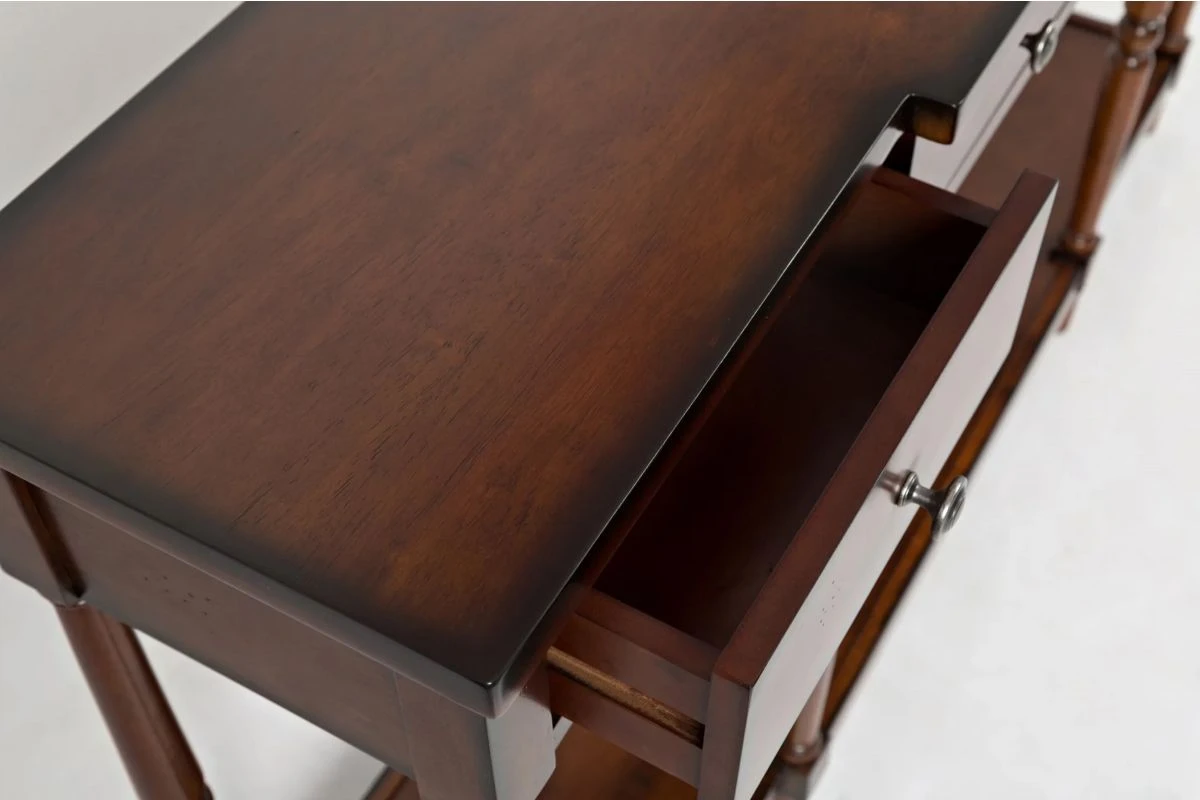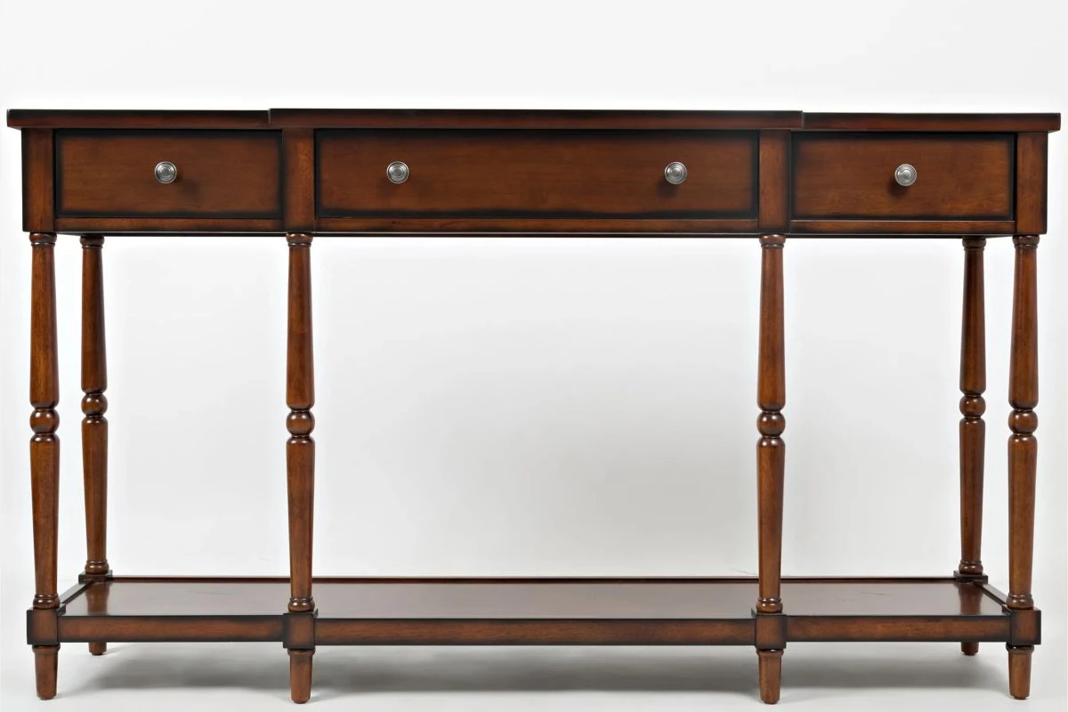 Add a touch of elegance to your hall, entry way, living room, or any room short on space. At only 15″ deep, this console is an excellent display and storage solution to narrow or tight areas.