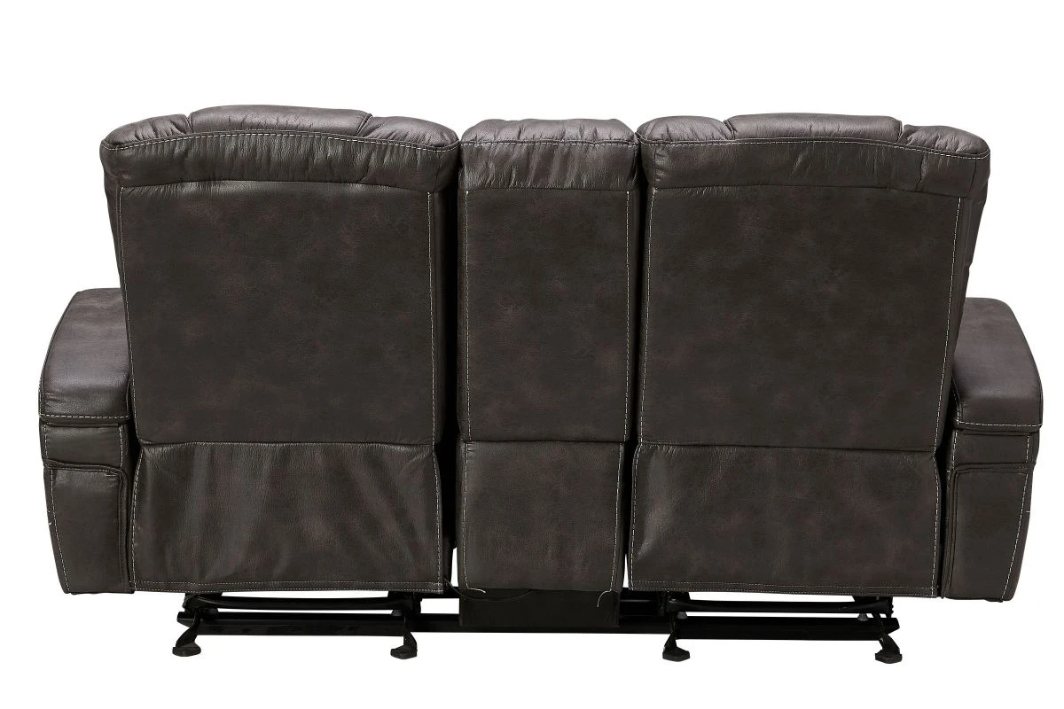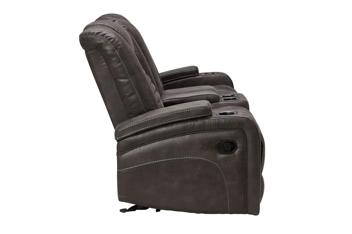 Stylish, innovative and comfortable, the Vance Glider Reclining Console Loveseat has it all. Upholstered in a grey polyester fabric, the soft hand of this fabric will entice you to relax for hours. Equipt with a fully loaded console that includes 2 cupholders and hidden storage, the Vance Glider Recliner is the ideal spot for entertaining guests. The innovative design of this collection continues with two hidden storage armrests, also fully loaded with cupholders. The luxury vehicle inspired backrest adds visual appeal to this robust bold and handsome collection. Add the Vance Glider Reclining Console Loveseat to your home for the theater-worthy living space that you have been longing for.