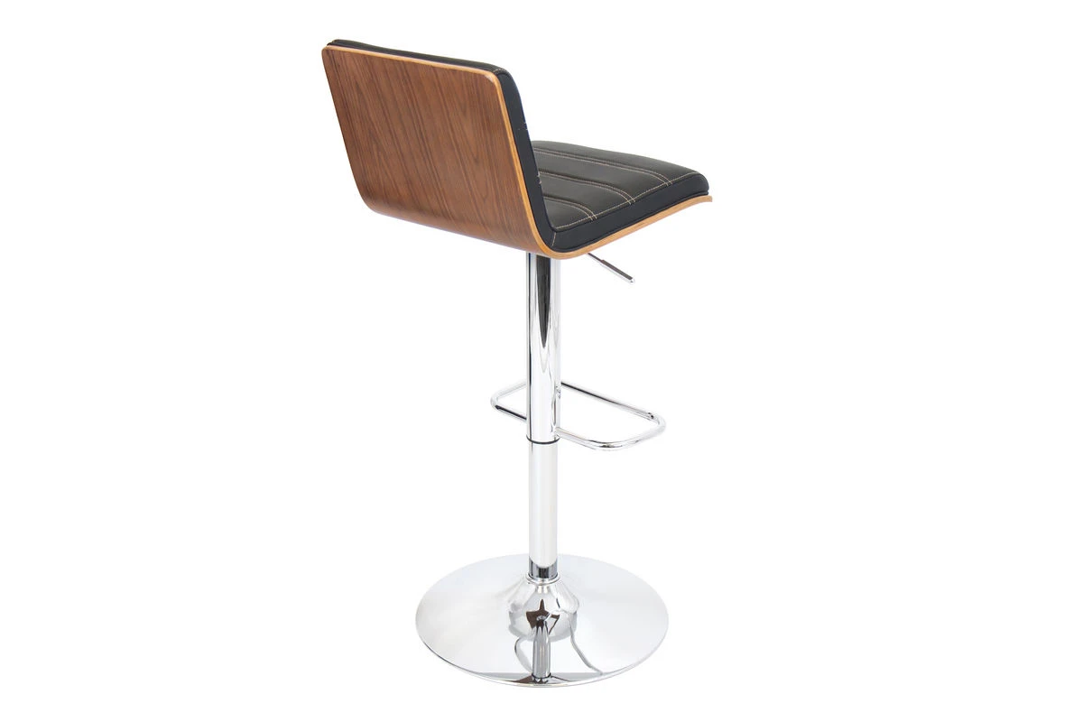 A perfect mix of style and comfort, the Vasari Bar Stool features a fashionable bent wood backrest, which ensures total support. A padded leatherette seat is offset nicely with contrasting stitching and a chrome footrest and base. The Vasari Bar Stool allows for height adjustment and will enhance the beauty of your kitchen or home bar.