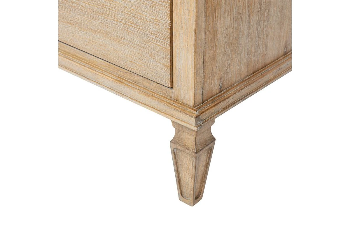 French inspired 6 drawer dresser with a wire brushed natural finish with grey highlights. Leg assembly required.