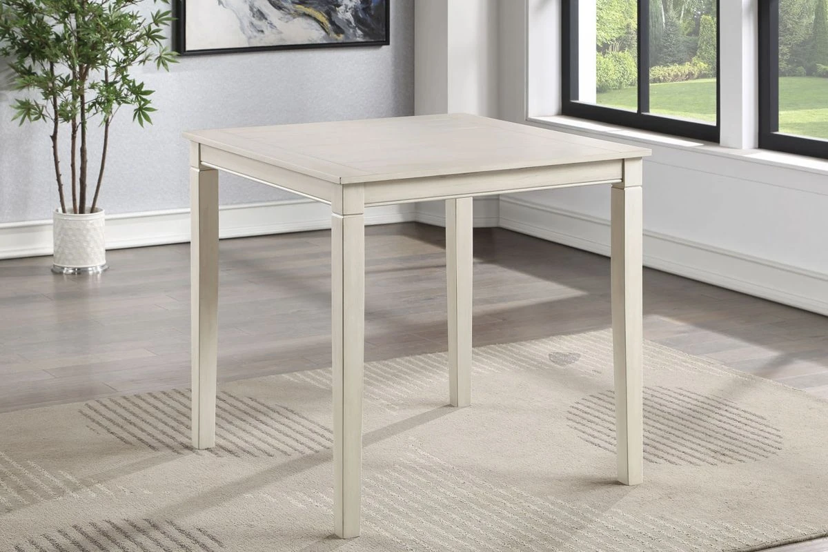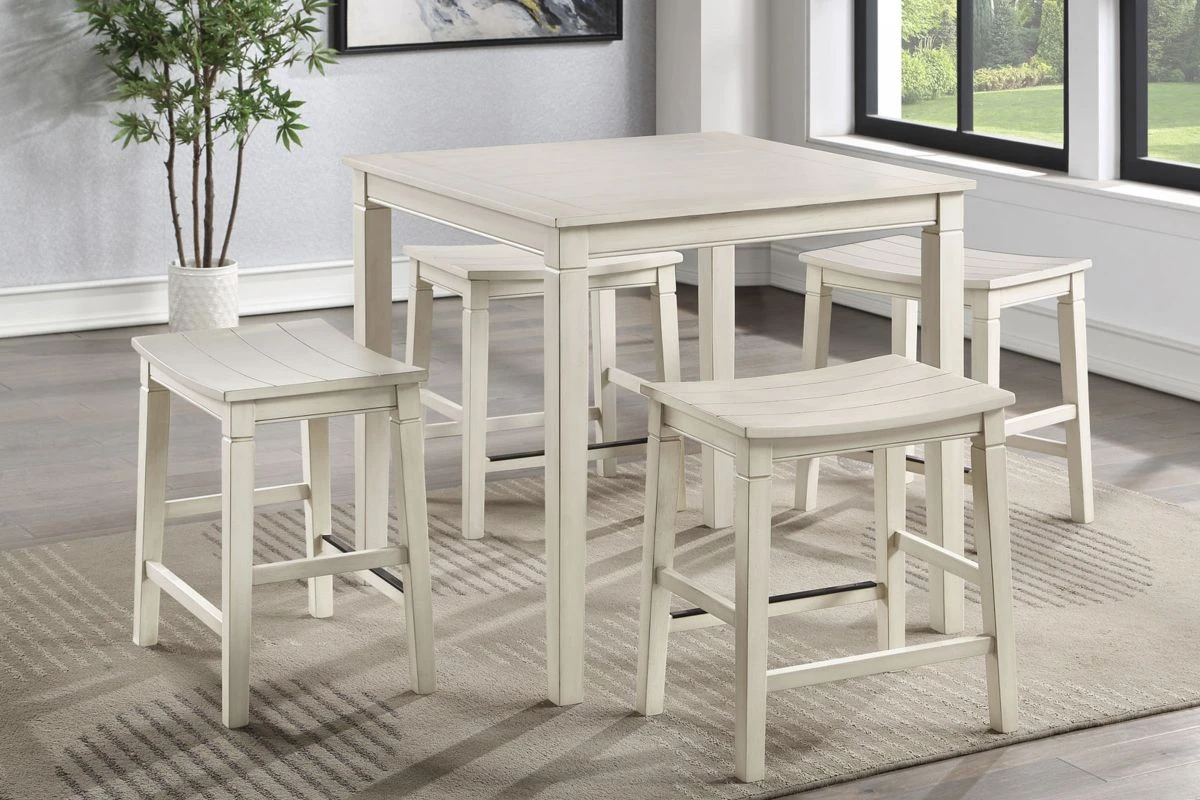 Westlake brings casual farmhouse design to a 5-Pack Counter Dining Set in this compact yet functional group. The 36-inch square table features a plank effect top that is mirrored in the shaped Counter Stool seat and fits the casual style of the collection. With seating for four, the Counter dinette set works well in apartments or smaller homes where space is at a premium.