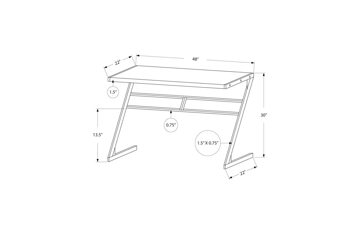 This sleek compact computer desk in a simple contemporary design adds style with functionality to your workspace. The smooth and spacious white laminated surface made from quality MDF material provides plenty of room for a laptop, lamp, and other office essentials. The sleek and sturdy Z shaped silver metal base gives that modern look. This desk easily compliments a student’s room or any place you have carved out as your office and creative space. Quick to assemble, you’ll have your work area set up in no time at all!